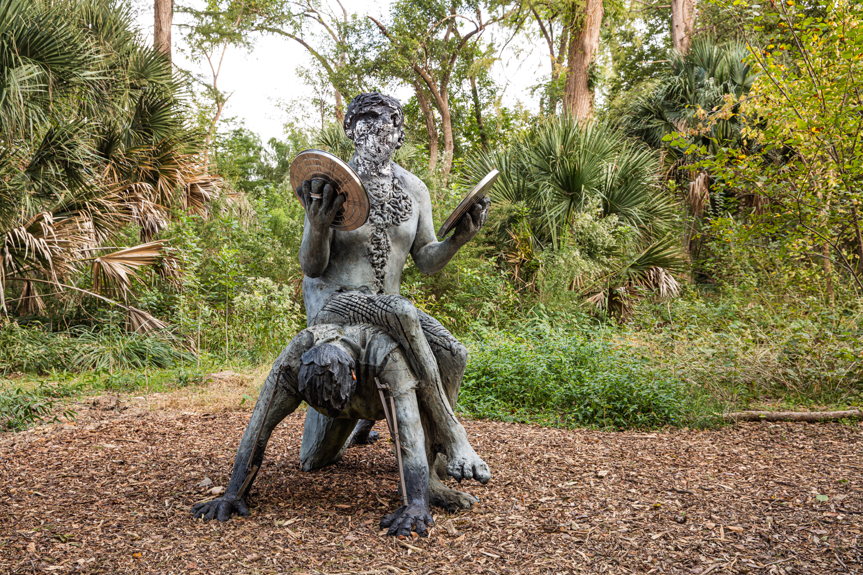 IMAGE: Wangechi Mutu, Water Woman, 2017. Bronze. 36 x 65 x 70 inches. Edition 2 of 3, with 2 AP. Collection of The Contemporary Austin. Purchased with funds provided by the Edward and Betty Marcus Foundation, 2017.5. Installation view, The Contemporary Austin – Laguna Gloria, Austin, Texas, 2017. Artwork © Wangechi Mutu. Image courtesy The Contemporary Austin. Photograph by Brian Fitzsimmons.
